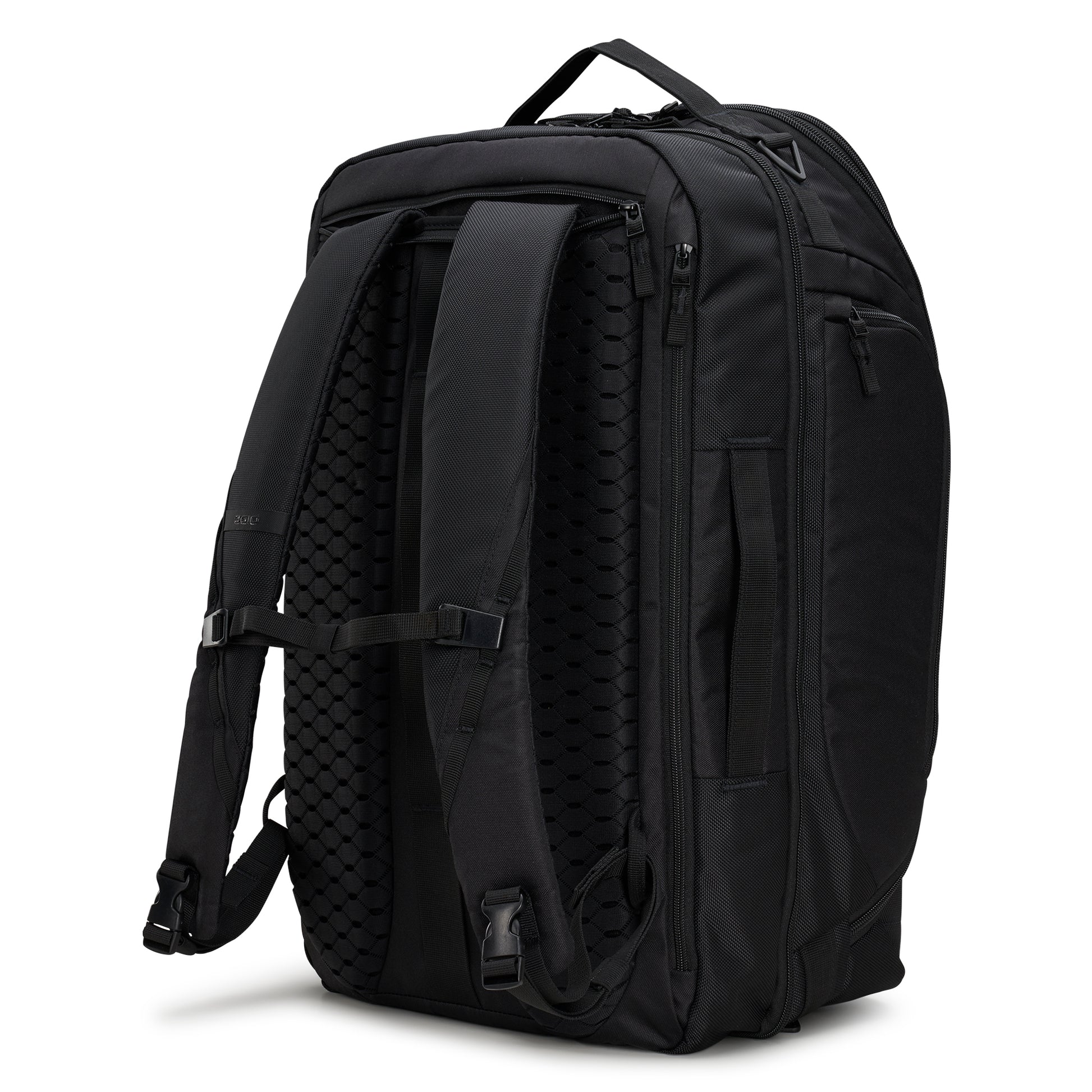 The epitome of spacious luxury in carry-on travel. This 45 liter weather resistant bag is designed as a weekender or for a business trip. Sleek and travel-savvy, this backpack has a full wraparound zip opening to its main compartment and tuck-away backpack straps to convert to a duffel. Compliant with carry-on requirements, it's loaded with 15+ pockets including a 17" laptop compartment, a built-in shoe compartment, and a separate clothes compartment. Enjoy maximum storage space for optimal organization when traveling.